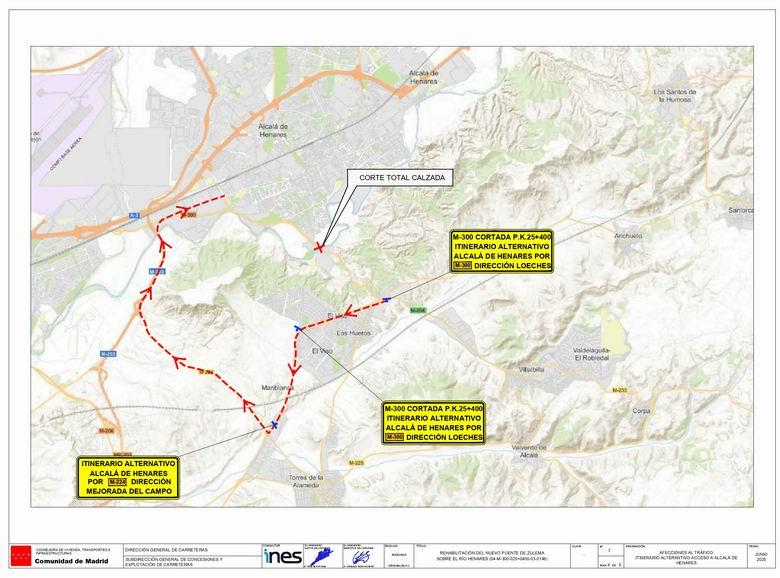 La Policía Local de Alcalá de Henares informa que, a partir del 6 de octubre, la M-300 a su paso por Alcalá de Henares permanecerá cerrada al tráfico a la altura del puente Zulema, sobre el río Henares (P.K. 25+400).