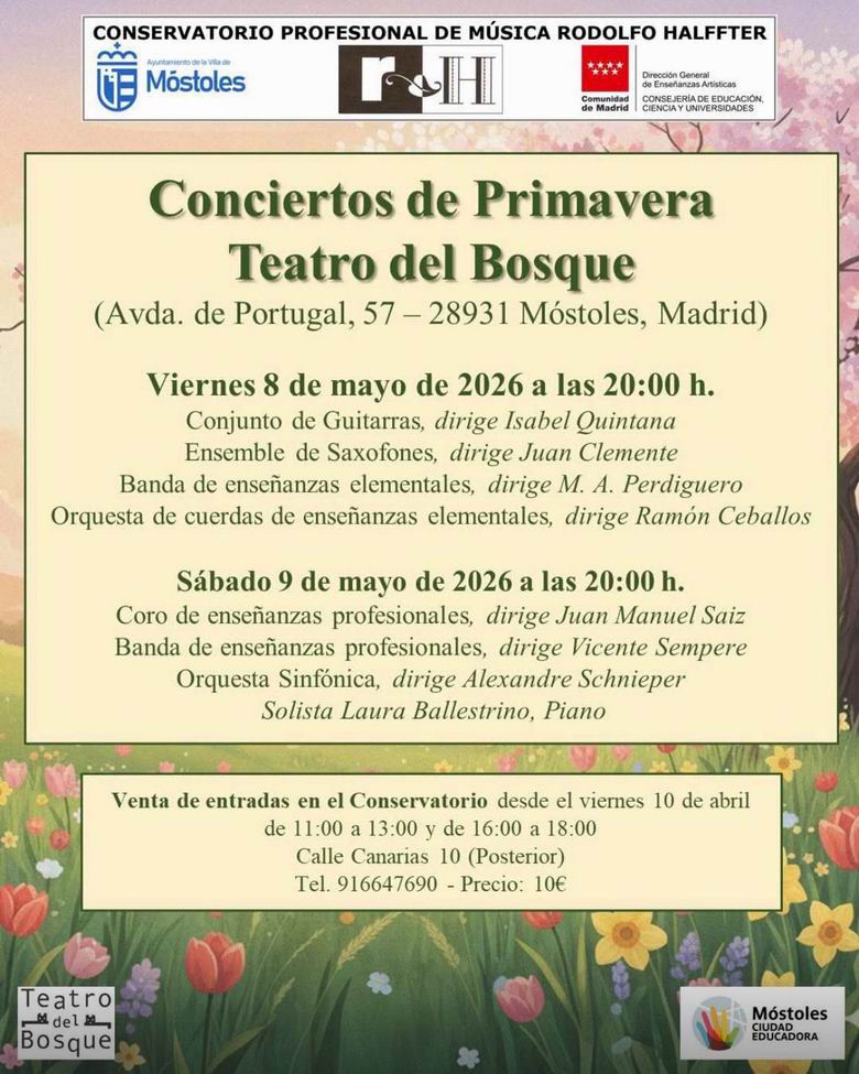 El Conservatorio Profesional de Música Rodolfo Halffter presenta sus Conciertos de Primavera, que se celebrarán los días 8 y 9 de mayo, a partir de las 20:00 h, en el Teatro del Bosque.