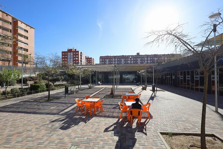 Cuenta con aulas, espacios formativos y de usos múltiples, consulta de podología, así como servicios de peluquería, sala de billar, cafetería, un patio exterior y zona ajardinada.